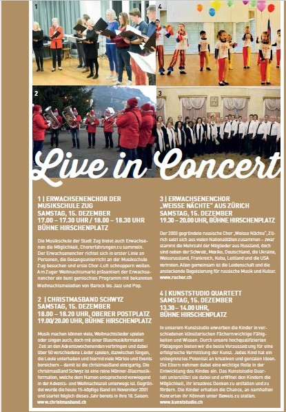 weitere Informationen finden Sie unter http://www.zuger-weihnachtsmarkt.ch/programm/
